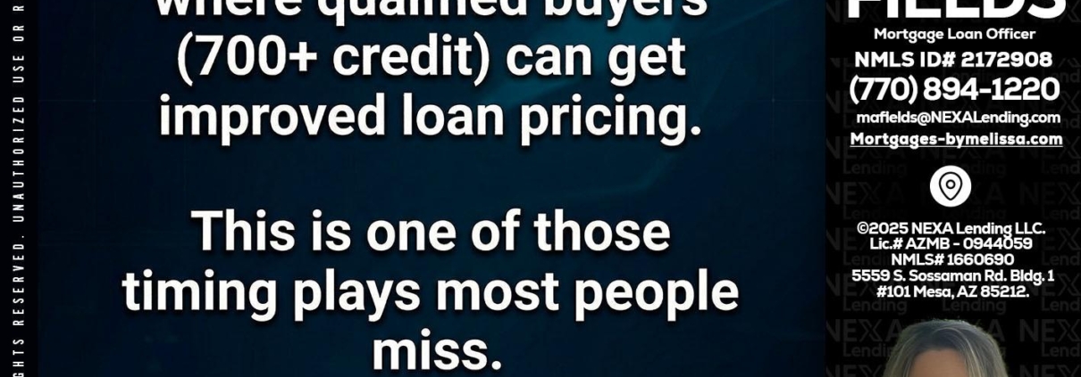 Hi, my name is Melissa Fields. I’m a Loan Officer with NEXA Lending LLC., offering personalized mortgage solutions, fast customized quotes, great rates and service with integrity.